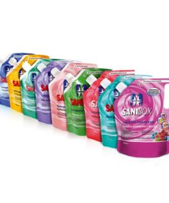 SANIBOX findes i 9 forskellige dufte og leveres i en praktisk miljøbevidst emballage.