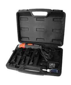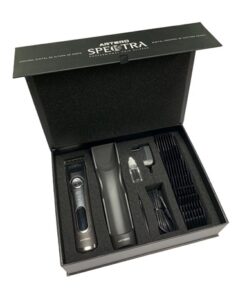 Trimmeren leveres med: Keramisk skær 0,3 mm, 2 stk dobbeltsidede afstandskamme som kan klippe i længderne 3,/4 5/6 mm. Lader, Olie og rengøringsbørste.