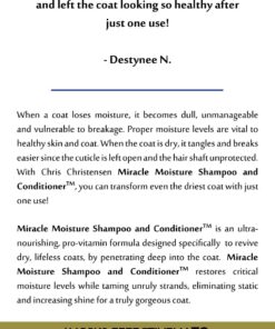 Miracle Moisture (fugtighedsgørende) Conditioner fra Chris Christensens Diamond Serie er en ultra-nærende conditioner sammensat så den kan blødgøre selv den tørreste pels.