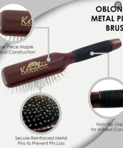 Kenchii pin brush Oblong er lavet af robuste og rustsikre metalstifter, som modstår bøjning og udtrækning. Børsten er lavet af luksuriøs ahorntræ-konstruktion i ét stykke. Det lækre håndtag er opbygget som et 6-facetter skridsikkert greb. Oplev Kenchii-børsternes uovertrufne kvalitet og ydeevne.