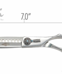 Shinobi-serien af ​​sakse giver et usædvanligt glat snit. 21-tands blenderen har en ultraskarp semi-konveks kant, der er velegnet til tyk og dobbelt pels, og giver en ultra jævn blender oplevelse, med moderat udtyndingskraft. Det forskudte håndtag med permanent fingerstøtte giver komfortabel håndpositionering under din plejesession. Shinobi er en af kenchii’s meget populære serier og er materiel Level 3.