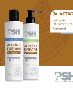 Almond Dream balsam er indiceret til hygiejne og reparation af skrøbelige og beskadigede pels. Formuleret med sød mandelekstrakt, panthenol og glycerin, aktive ingredienser, der blødgør og styrker pelsens hårfibre og giver den et yngre og sundere udseende. Bekæmper miljøbelastning på dermis. Velegnet til følsom hud: farvefri og Khaton-fri.