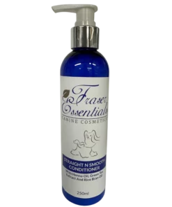 Specielt formuleret til racer med dropcoat og områder, der kræver en ekstra glat finish. Fraser Essentials Straight n Smooth Conditioner er en nærende formel, der er designet til at hjælpe med at glatte og udglatte pelsen, samtidig med at den forbedrer glans og håndterbarhed. Ideel til groomere og udstillere, der søger en blød, glat og poleret finish som forberedelse til udstillingsdagen eller konkurrencen.