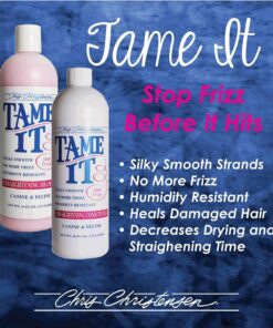 Chris Christensen Tame It Conditioner inderholder et avanceret system til udjævning og udglatning, der blidt renser og fugter beskadiget hår og samtidig medvirker til at reparere spaltede spidser, løsne op og udglatte krøller, hvirvler og krusninger. Tame It Balsam styrer krusninger og efterlader pelsen i kontrol, med en langvarig silkeblød glathed.